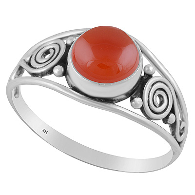 Gorgeous Rawa & Coil Work Around Carnelian Round Shape 925 Sterling Solid Silver Ring