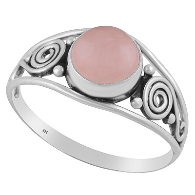 Gorgeous Rawa & Coil Work Around Rose Quartz Round Shape 925 Sterling Solid Silver Ring