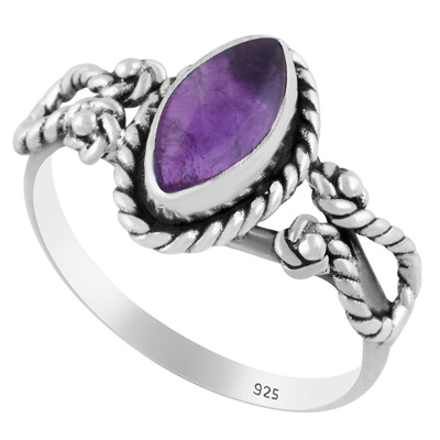 Stunning Textured Wire Around Amethyst Marquise Shape 925 Sterling Solid Silver Ring