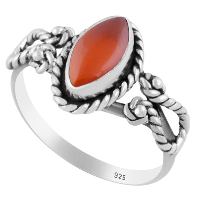 Stunning Textured Wire Around Carnelian Marquise Shape 925 Sterling Solid Silver Ring