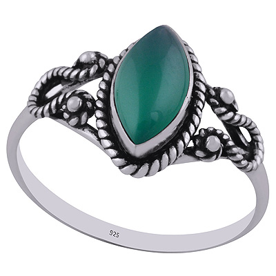Stunning Textured Wire Around Green Onyx Marquise Shape 925 Sterling Solid Silver Ring
