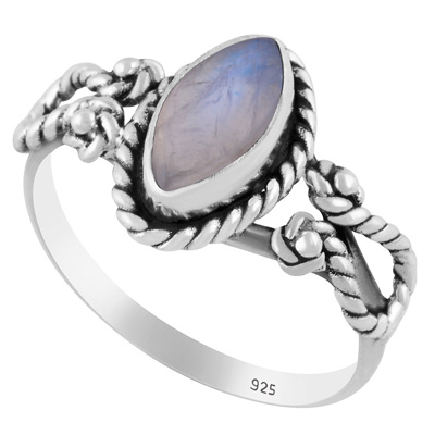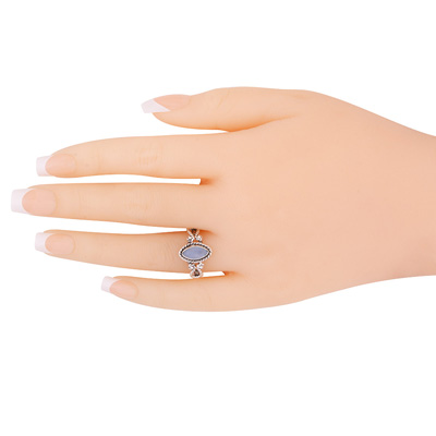 Stunning Textured Wire Around Blue Chalcedony Marquise Shape 925 Sterling Solid Silver Ring