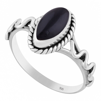 Unique & Textured Wire Work Around Black Onyx Marquise Shape 925 Sterling Solid Silver Ring