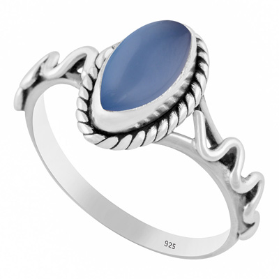 Unique & Textured Wire Work Around Blue Chalcedony Marquise Shape 925 Sterling Solid Silver Ring