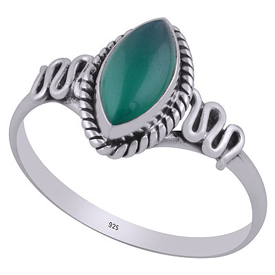 Unique & Textured Wire Work Around Green Onyx Marquise Shape 925 Sterling Solid Silver Ring