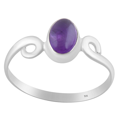 Gorgeous Wire Coil Work Shank Around Amethyst Oval Shape 925 Sterling Solid Silver Ring