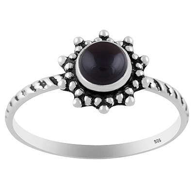 Classic Rawa Work Around Black Onyx Round Shape 925 Sterling Solid Silver Ring