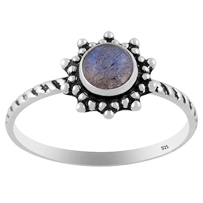 Classic Rawa Work Around Labradorite Round Shape 925 Sterling Solid Silver Ring