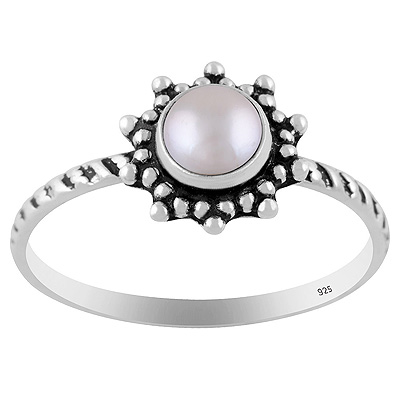 Classic Rawa Work Around Pearl Round Shape 925 Sterling Solid Silver Ring