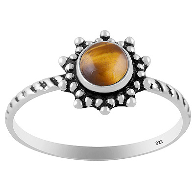 Classic Rawa Work Around Tiger's Eye Round Shape 925 Sterling Solid Silver Ring