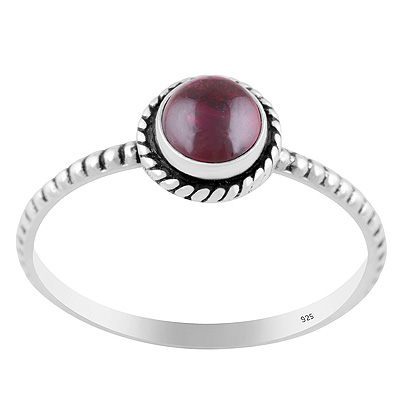 Classic Wire Work Around Garnet Round Shape 925 Sterling Solid Silver Ring