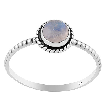 Home | Silver Rings | Cabochon Rings | Classic Wire Work Around Rainbow Moonstone Round Shape 925 Sterling Solid Silver Ring