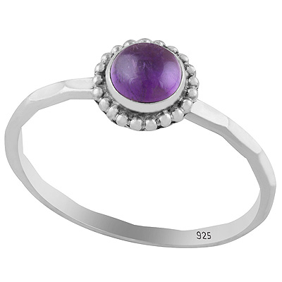 Gorgeous Texture Band Amethyst Round Shape 925 Sterling Solid Silver Ring