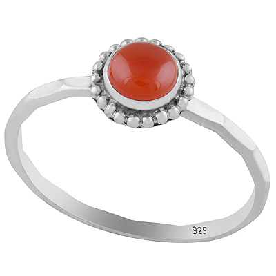 Gorgeous Texture Band Carnelian Round Shape 925 Sterling Solid Silver Ring