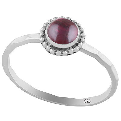 Gorgeous Texture Band Garnet Round Shape 925 Sterling Solid Silver Ring