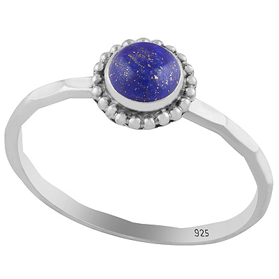 Gorgeous Texture Band Lapis Round Shape 925 Sterling Solid Silver Ring