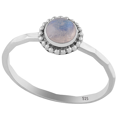 Home | Silver Rings | Cabochon Rings | Gorgeous Texture Band Rainbow Moonstone Round Shape 925 Sterling Solid Silver Ring