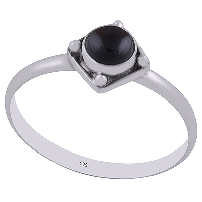 Edgy Rawa Work Around Black Onyx Round Shape 925 Sterling Solid Silver Ring