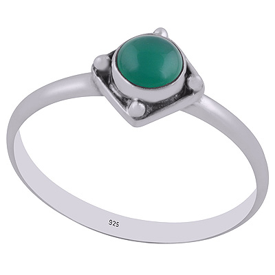 Edgy Rawa Work Around Green Onyx Round Shape 925 Sterling Solid Silver Ring