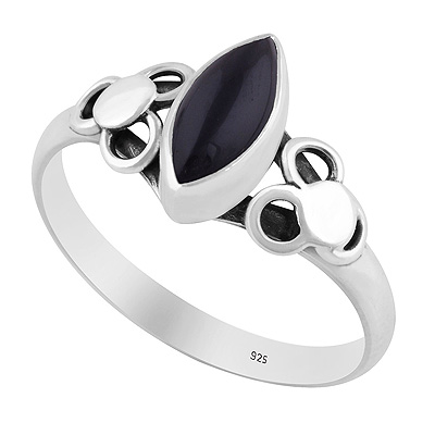 Alluring Hand Work Around Black Onyx Marquise Shape 925 Sterling Solid Silver Ring