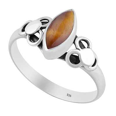 Alluring Hand Work Around Tiger's Eye Marquise Shape 925 Sterling Solid Silver Ring
