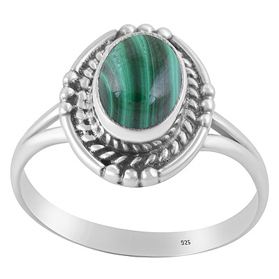 Stunning Textured Wire & Rawa Around Malachite Oval Shape 925 Sterling Solid Silver Ring