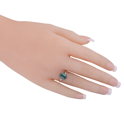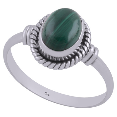 Handcrafted Textured Wire Work Around Malachite Oval Shape 925 Sterling Solid Silver Ring