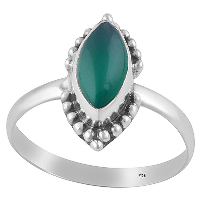 Beautiful Rawa Work Around Green Onyx Marquise Shape 925 Sterling Solid Silver Ring