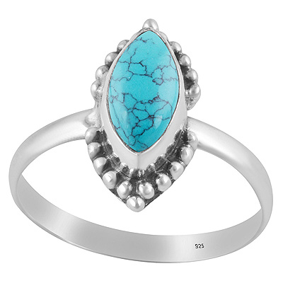 Beautiful Rawa Work Around Turquoise Marquise Shape 925 Sterling Solid Silver Ring