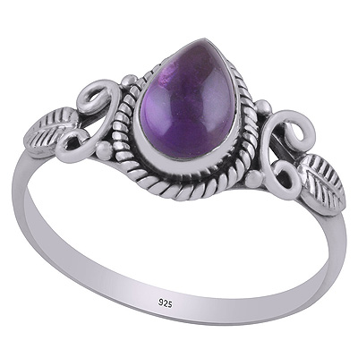 Gorgeous Textured leaf & Twisted Wire Work Around Amethyst Pear Shape 925 Sterling Solid Silver Ring