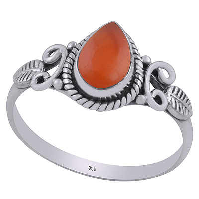 Gorgeous Textured leaf & Twisted Wire Work Around Carnelian Pear Shape 925 Sterling Solid Silver Ring