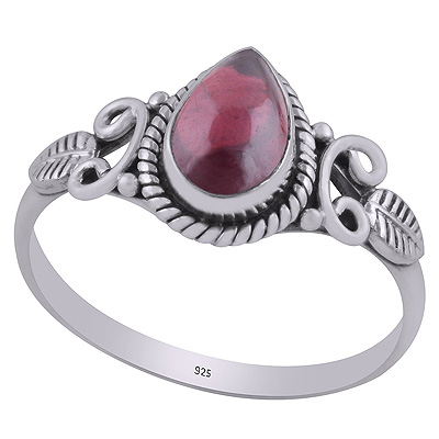 Gorgeous Textured leaf & Twisted Wire Work Around Garnet Pear Shape 925 Sterling Solid Silver Ring