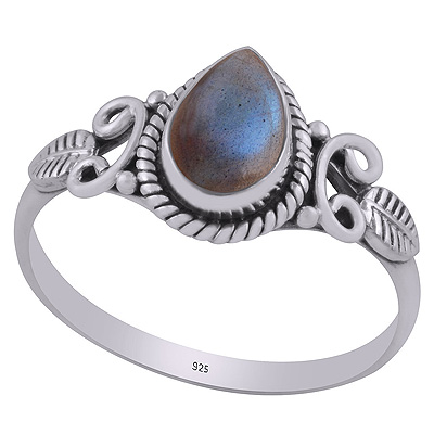 Gorgeous Textured leaf & Twisted Wire Work Around Labradorite Pear Shape 925 Sterling Solid Silver Ring