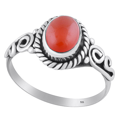 Stunning Twisted Wire Work Around Carnelian Oval Shape 925 Sterling Solid Silver Ring