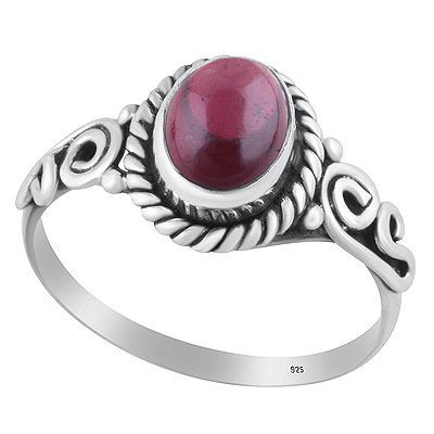 Stunning Twisted Wire Work Around Garnet Oval Shape 925 Sterling Solid Silver Ring