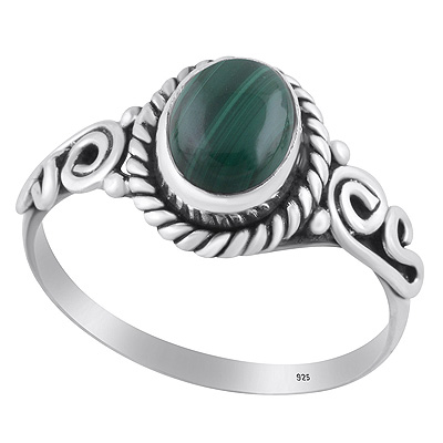 Stunning Twisted Wire Work Around Malachite Oval Shape 925 Sterling Solid Silver Ring