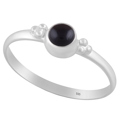 Beautiful Rawa Work Around Black Onyx Round Shape 925 Sterling Solid Silver Ring