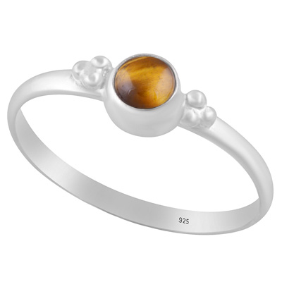 Beautiful Rawa Work Around Tiger's Eye Round Shape 925 Sterling Solid Silver Ring