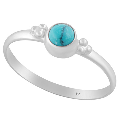 Beautiful Rawa Work Around Turquoise Round Shape 925 Sterling Solid Silver Ring
