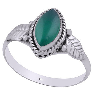 Alluring Textured Leaf Around Green Onyx Marquise Shape 925 Sterling Solid Silver Ring