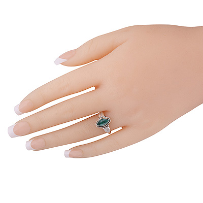 Alluring Textured Leaf Around Green Onyx Marquise Shape 925 Sterling Solid Silver Ring