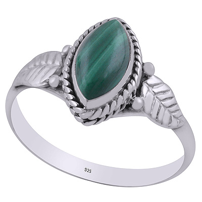 Alluring Textured Leaf Around Malachite Marquise Shape 925 Sterling Solid Silver Ring