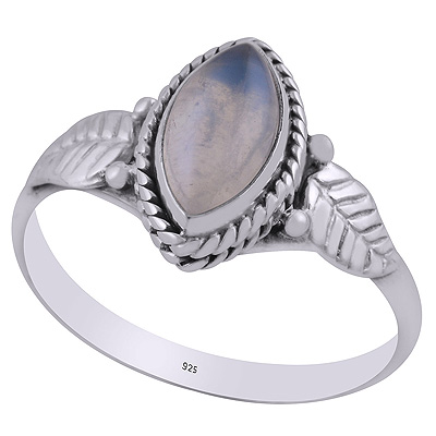 Alluring Textured Leaf Around Blue Chalcedony Marquise Shape 925 Sterling Solid Silver Ring