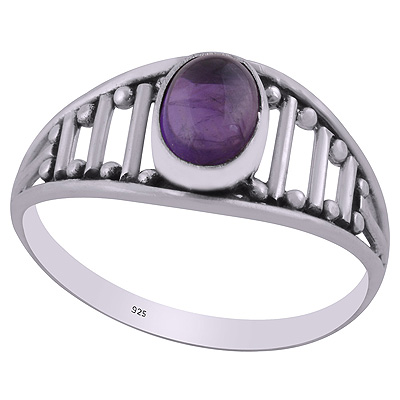Beautiful Handcrafted Pattern Around Amethyst Oval Shape 925 Sterling Solid Silver Ring
