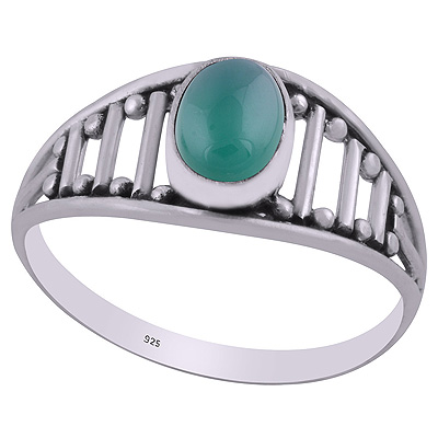 Beautiful Handcrafted Pattern Around Green Onyx Oval Shape 925 Sterling Solid Silver Ring