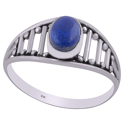 Beautiful Handcrafted Pattern Around Lapis Oval Shape 925 Sterling Solid Silver Ring