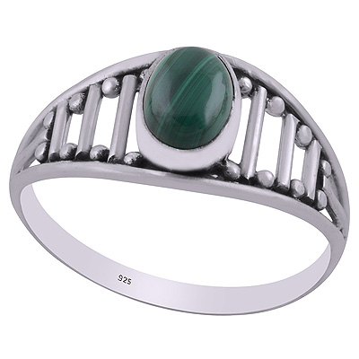 Beautiful Handcrafted Pattern Around Malachite Oval Shape 925 Sterling Solid Silver Ring