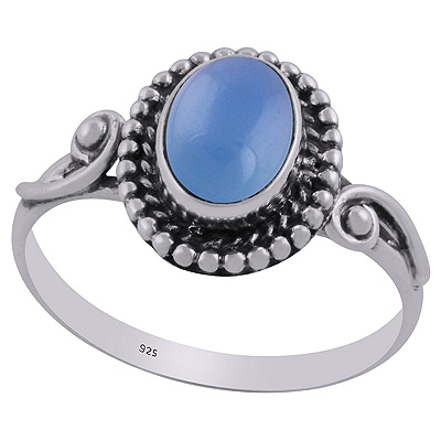 Alluring Oxidised Work Around Blue Chalcedony Oval Shape 925 Sterling Solid Silver Ring