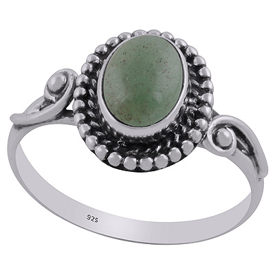 Alluring Oxidised Work Around Green Aventurine Oval Shape 925 Sterling Solid Silver Ring