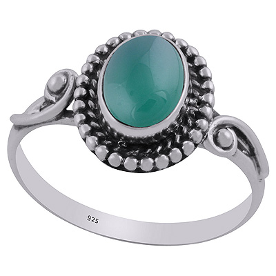 Alluring Oxidised Work Around Aqua Chalcedony Oval Shape 925 Sterling Solid Silver Ring